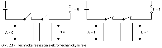 Obvod bude spojený len vtedy, ak budú existovať obidva vstupné signály (A = 1, B = 1), len v tomto prípade cievkami relé preteká prúd a vplyvom magnetického poľa kontakty spoja obvod.